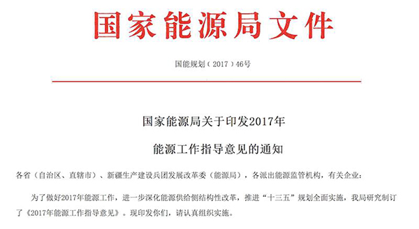 為了更好的做好完成2017年能源工作,近日,國家能源局研究制訂了《2017年能源工作指導意見》(簡稱意見)。