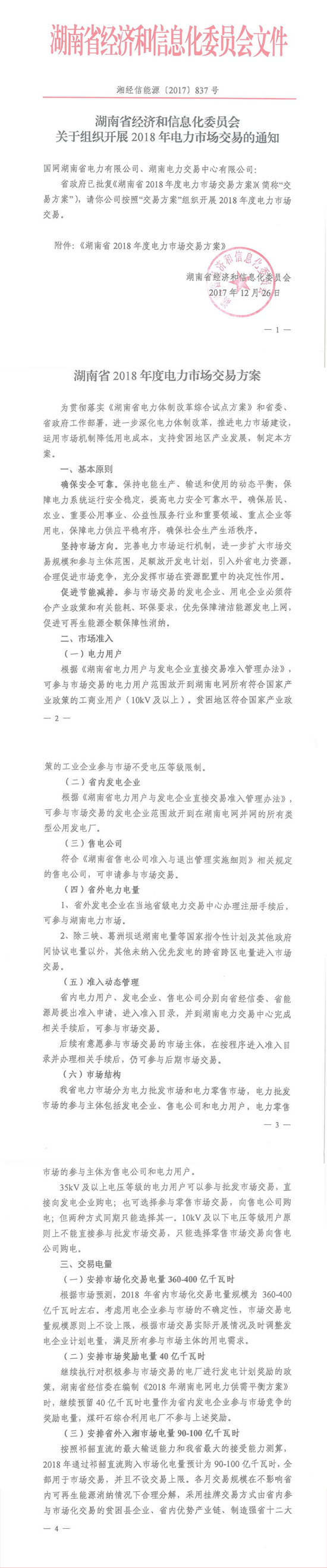 湖南省經(jīng)信委發(fā)布:關(guān)于組織開(kāi)展2018年電力市場(chǎng)交易的通知