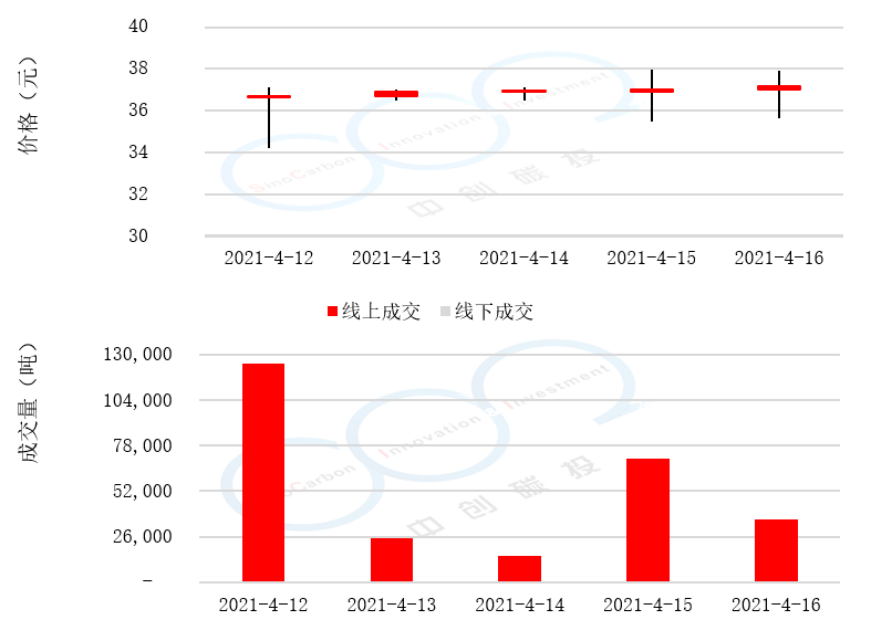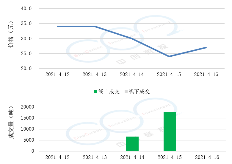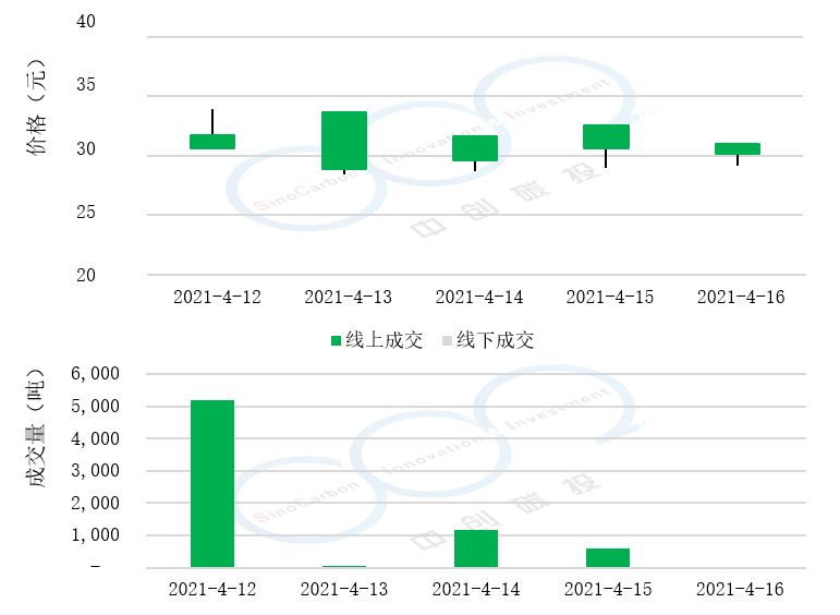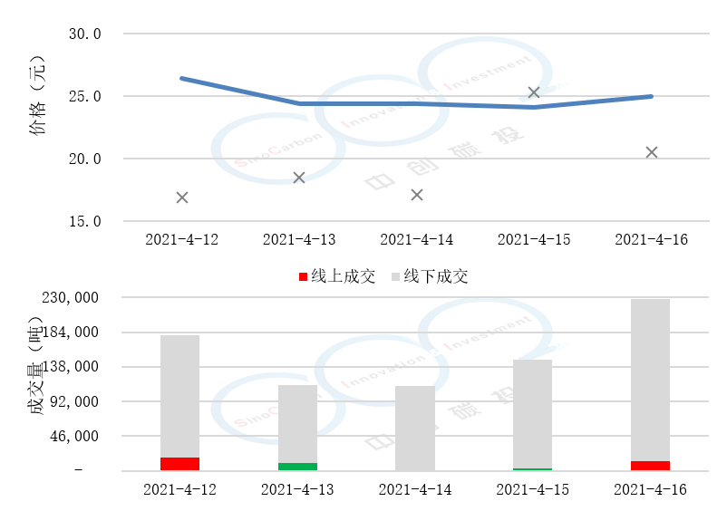 • 線下成交價最低為16.88元,最高為25.30元,平均碳價為19.66元。