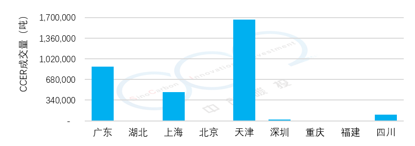 本周,CCER共成交314.9萬噸,是上周成交量的5倍,其中廣東、天津成交活躍,上海、四川、深圳也有一定成交量。