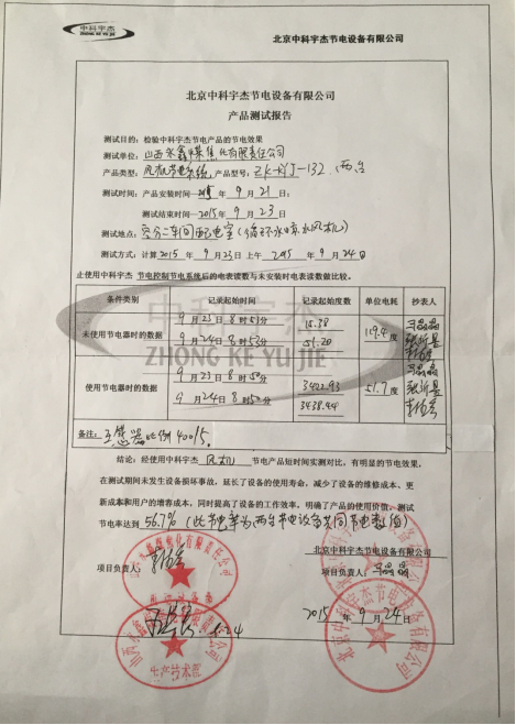 經(jīng)過(guò)山西永鑫管理人員的嚴(yán)格審核,中科宇杰智能風(fēng)機(jī)節(jié)電系統(tǒng)的節(jié)能效率達(dá)到了56.7%,遠(yuǎn)遠(yuǎn)超過(guò)了企業(yè)的預(yù)期,山西永鑫的管理人員對(duì)中科宇杰的工程人員表示感謝和贊揚(yáng)。在要求如此嚴(yán)格的情況下,中科宇杰仍然能設(shè)計(jì)出如此高效能的節(jié)能系統(tǒng),獲得很好的經(jīng)濟(jì)效益。