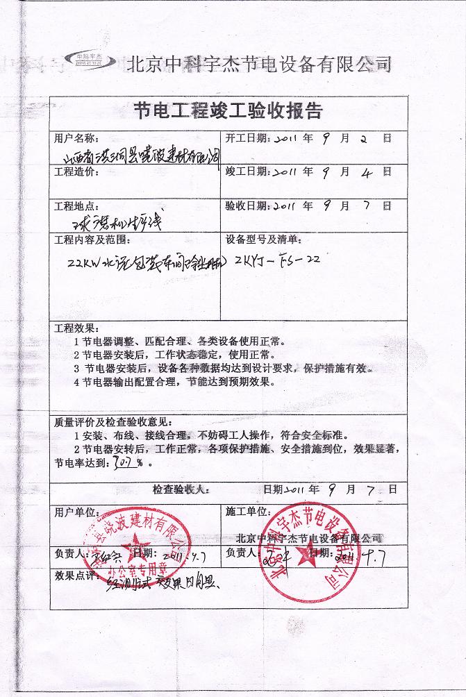 安裝調(diào)試驗(yàn)收,節(jié)能效率達(dá)到30.7%,投資回報期一年半,按質(zhì)保十年計(jì)算,此項(xiàng)節(jié)能工程能為山西洪洞縣曉波建材有限公司帶來四百多萬人民幣的直接經(jīng)濟(jì)效益。