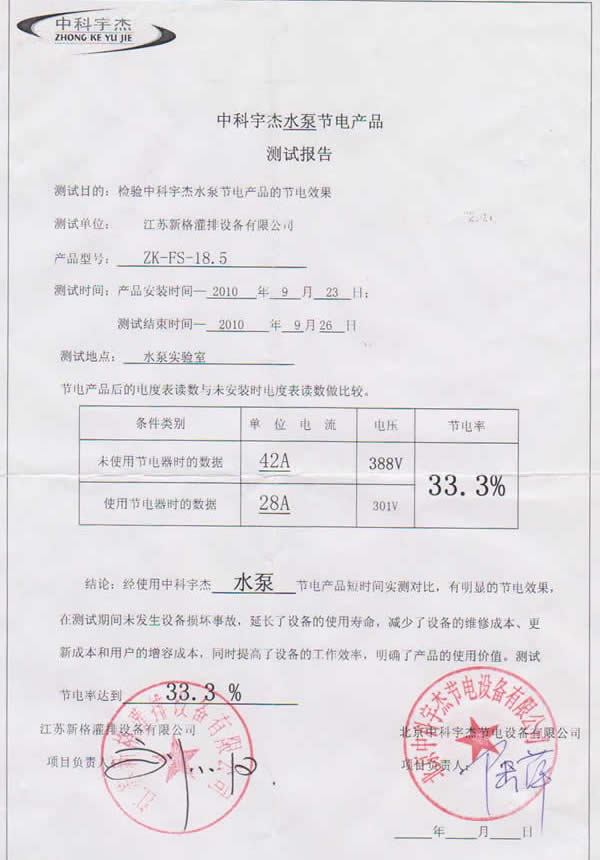 經(jīng)過嚴(yán)格的測試和同期的用電對比,節(jié)能效率達(dá)到33.3%,節(jié)能效率超出了技術(shù)論證的結(jié)果。中科宇杰的技術(shù)實(shí)力得到權(quán)威專家的認(rèn)同。