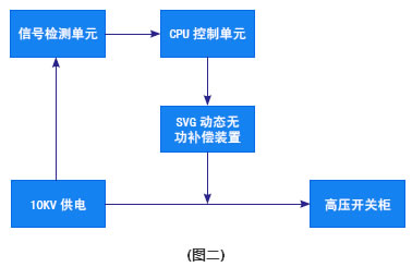 由圖二所示,在10KV高壓開關(guān)柜進(jìn)線處并聯(lián)安裝SVG動(dòng)態(tài)無(wú)功補(bǔ)償裝置,基本原理是利用可關(guān)斷大功率電力電子器件(如IGBT)組成自換相橋式電路,經(jīng)過(guò)電抗器并聯(lián)在電網(wǎng)上,適當(dāng)?shù)卣{(diào)節(jié)橋式電路交流側(cè)輸出電壓的幅值和相位,或者直接控制其交流側(cè)電流,就可以使該電路吸收或者發(fā)出滿足要求的無(wú)功電流,實(shí)現(xiàn)動(dòng)態(tài)無(wú)功補(bǔ)償?shù)哪康摹?/td> | ![]() |